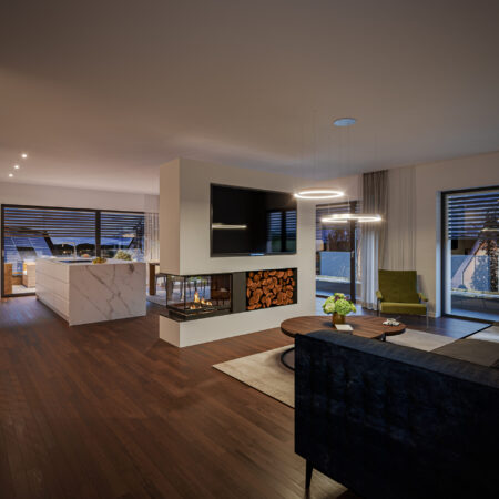 Stellen Sie sich vor, Sie öffnen die Tür zu einem Ort, der sofort Wärme ausstrahlt. Ein Ort, der moderne Architektur mit wohltuender Geborgenheit verbindet.