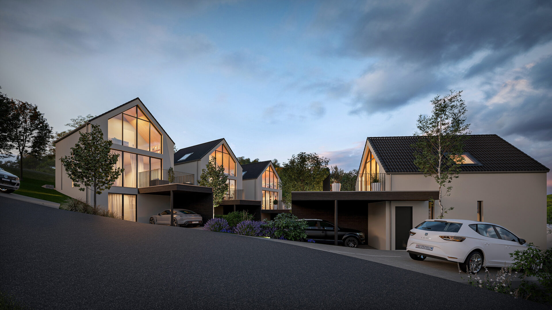 Die architektonische Anordnung der Häuser ist so gestaltet, dass jeder Eigentümer genug Privatsphäre geniessen kann, ohne die Verbundenheit zur Gemeinschaft zu verlieren. Die offen und einladend konzipierten Grundrisse schaffen Raum für Begegnung und Rückzug zugleich.