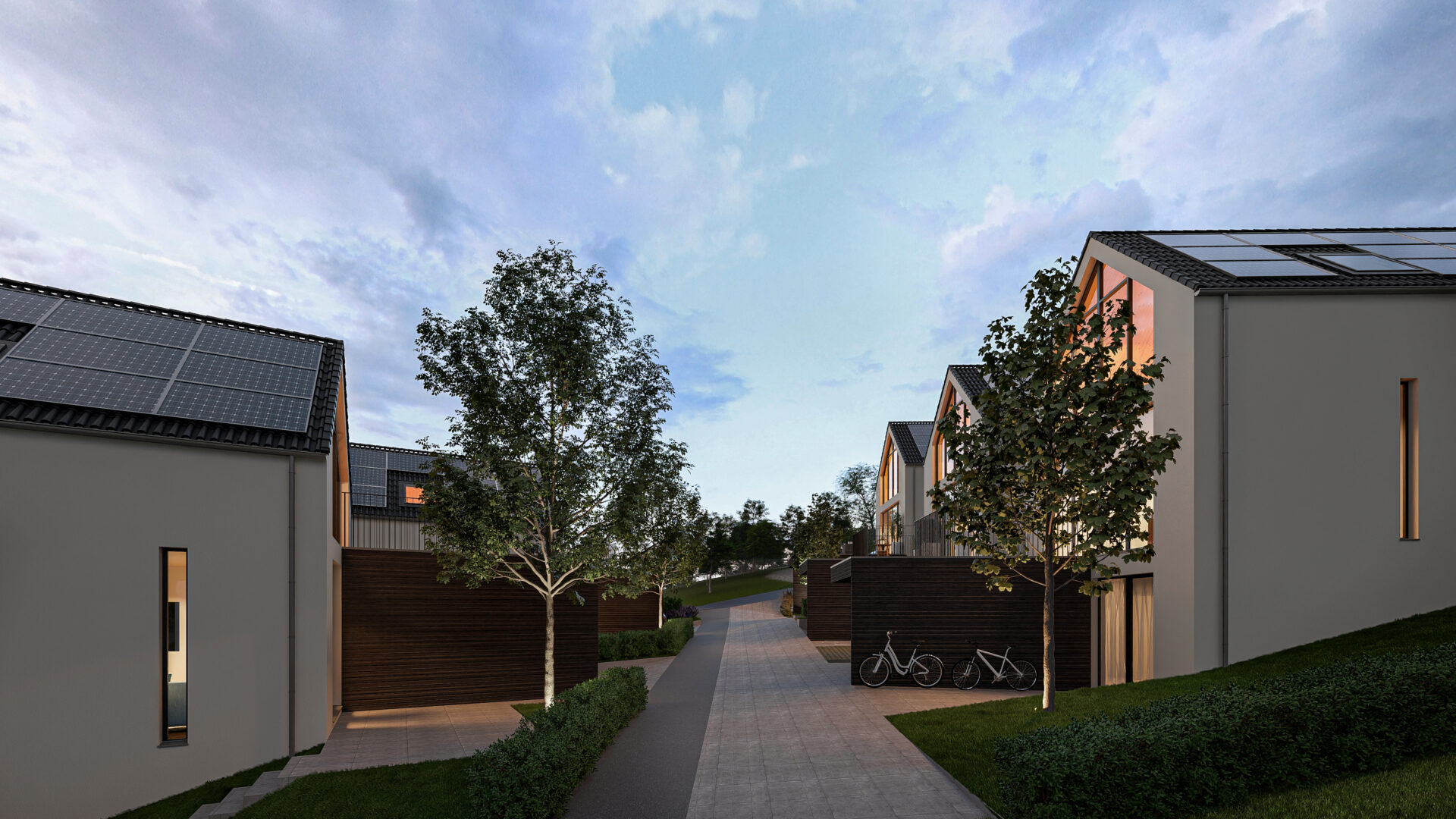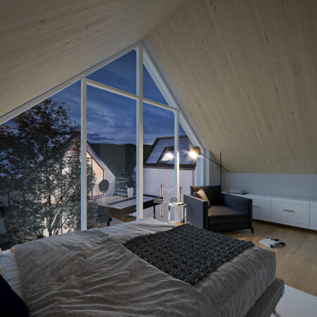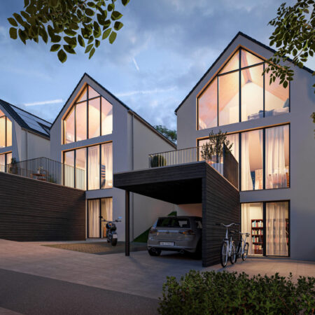 Für nachhaltigen Komfort sorgt eine moderne Wärmepumpe, die effizient und umweltfreundlich heizt. Zudem ist jedes Haus mit einer Photovoltaikanlage ausgestattet, die mehr Energie erzeugt, als im Alltag verbraucht wird für ein zukunftsfähiges, energieeffizientes Wohnen.